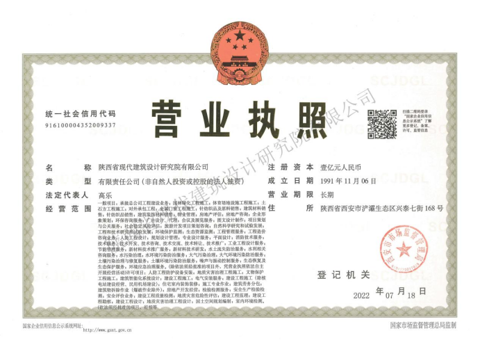 陜西省現(xiàn)代建筑設計研究院有限公司始建于1954年,經(jīng)過近七十年開拓、積累、發(fā)展,現(xiàn)已成為擁有建筑工程、紡織、印染工程設計甲級資質,工程咨詢甲級資信,城鄉(xiāng)規(guī)劃編制、市政行業(yè)、風景園林工程、環(huán)境工程設計乙級資質,建筑工程施工總承包,建筑機電安裝、建筑裝修裝飾、建筑幕墻、消防設施、鋼結構、特種工程(結構補強)施工專業(yè)承包資質??蓮氖陆ㄔO工程總承包業(yè)務以及項目管理和相關的技術與管理服務的綜合型高新技術企業(yè)。現(xiàn)隸屬于陜西省科學技術廳管理的陜西科技控股集團有限公司。